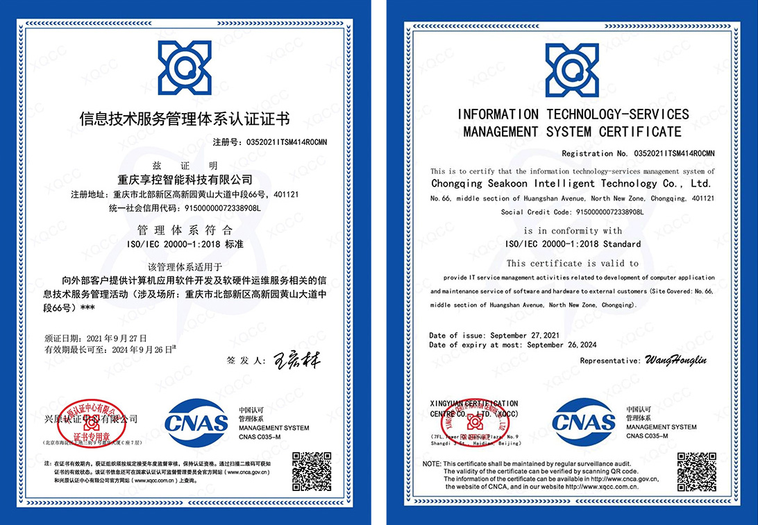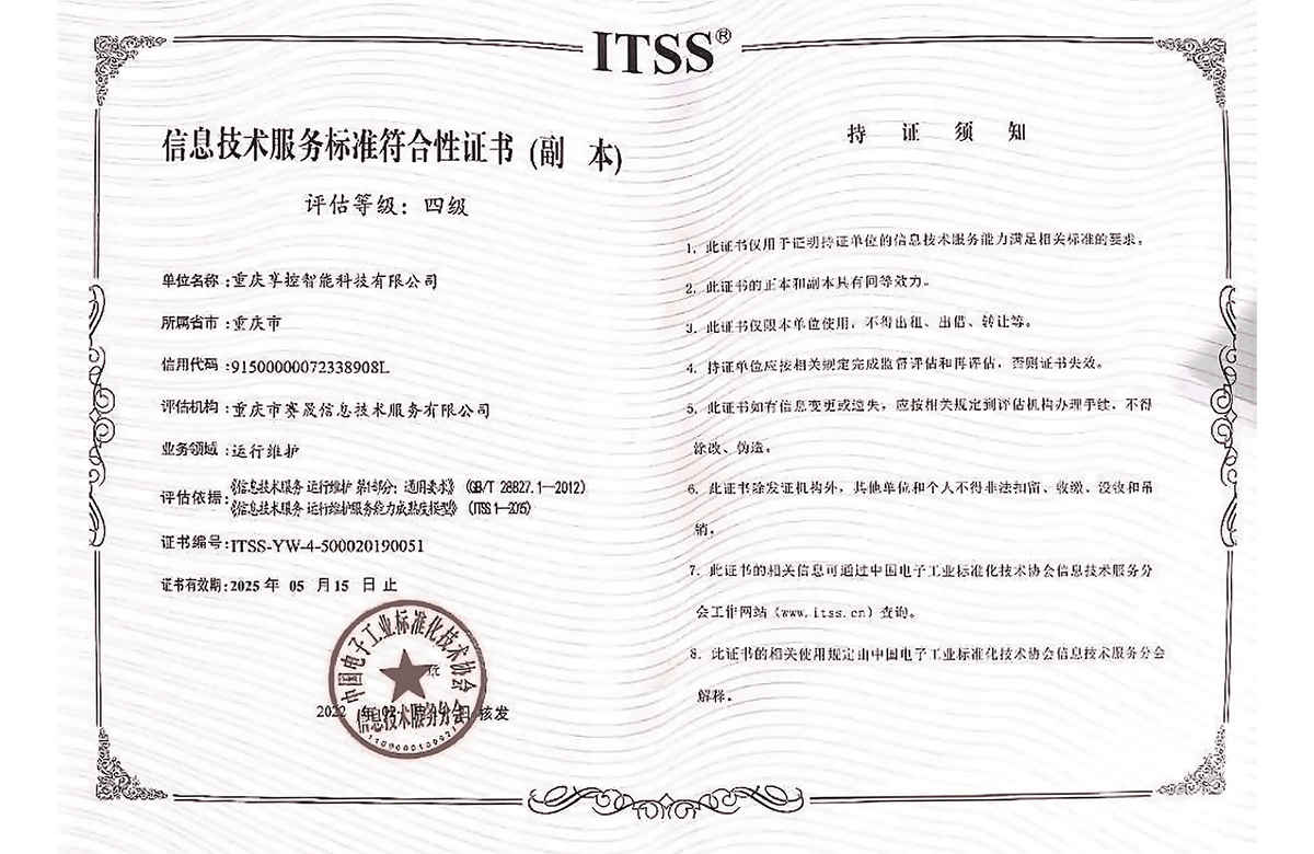 獲信息技術(shù)運行維護標準符合性證書